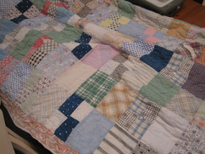 I'm not sure where I got this quilt but I'm always on the lookout for one...the more fabrics used - the more I love them...and if it's worn. that doesn't really bother me either...