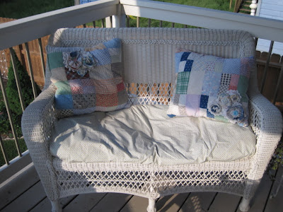 Love these pillows! I always watch for quilts to use, lately I have found the weirdest colors-not my style for sure.